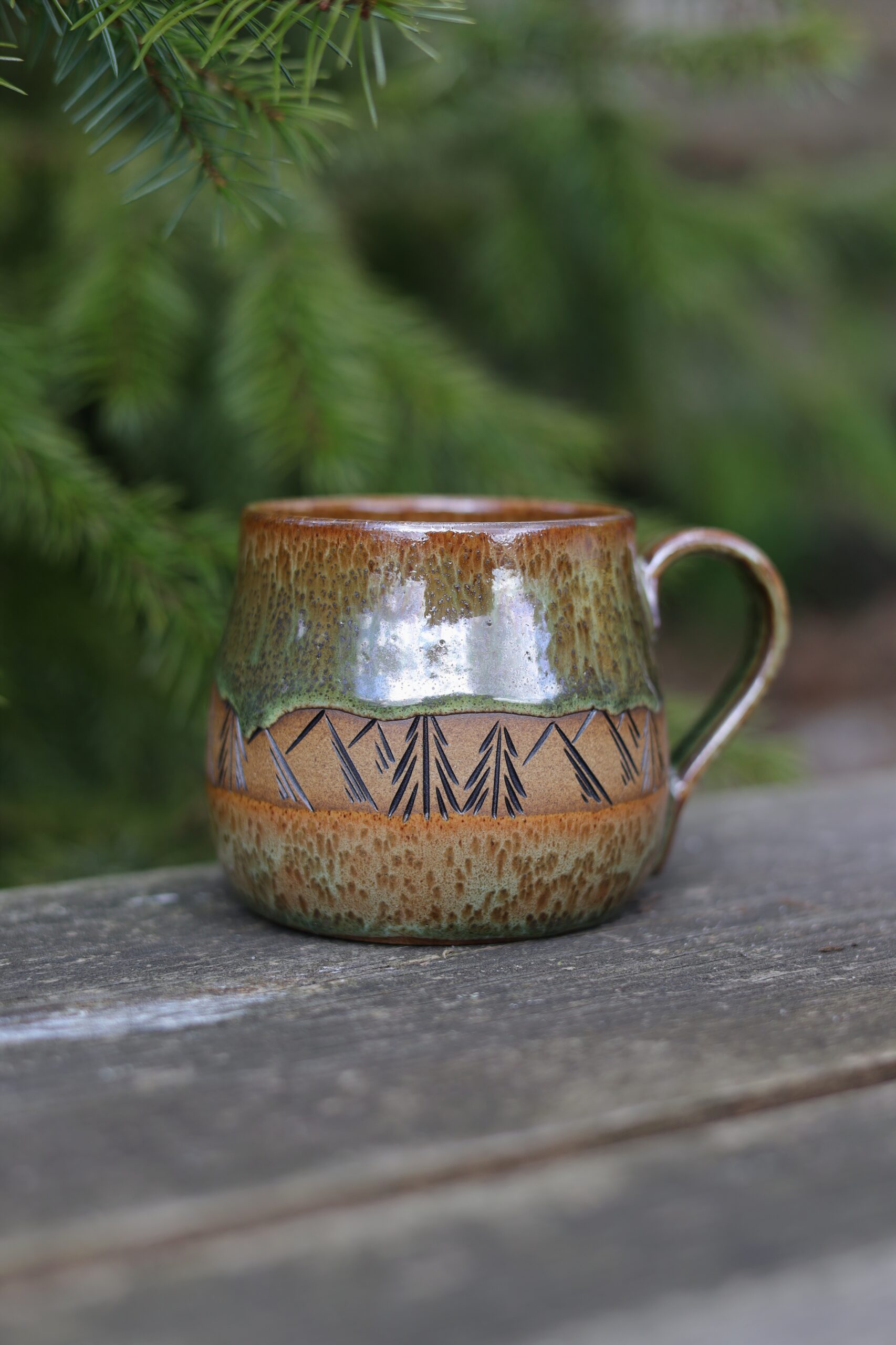 Kubek wykonałam na kole garncarskim z beżowej gliny. Nie jest idealny i posiada ślady moich rąk. Poszkliwiony został szkliwem przeznaczonym do kontaktu z żywnością oraz wypalony w wysokiej temperaturze odpowiedniej do użytej gliny. Nie ma dwóch takich samych kubków, mogą delikatnie różnić się od siebie pojemnością, kształtem, wzorem i efektami na szkliwie. Kolor szkliwa może nieznacznie różnić się od tego na zdjęciach. Ceramikę można myć w zmywarce, ale by dłużej cieszyć się pięknym szkliwem zalecam mycie ręczne.