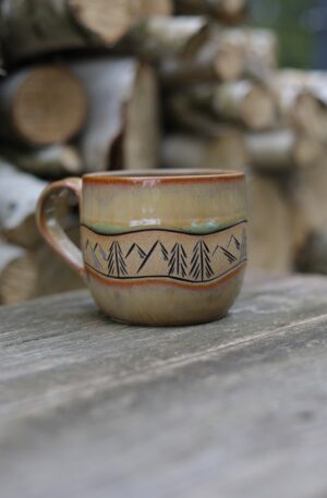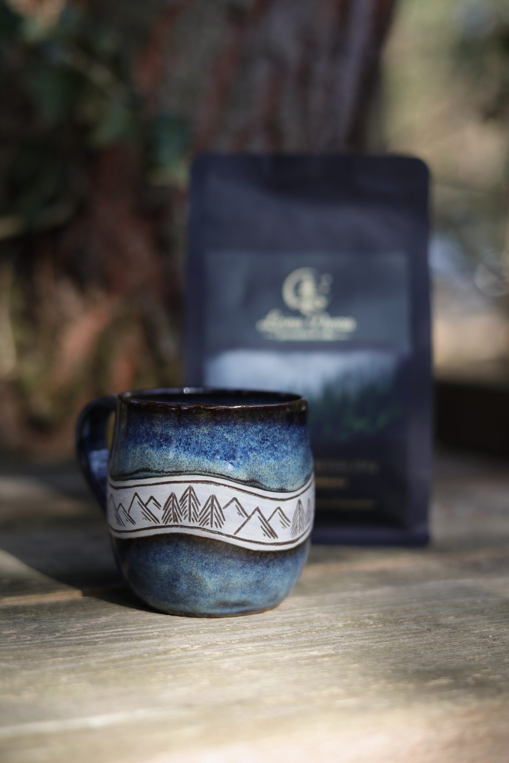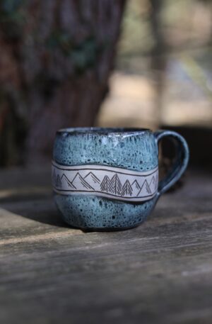 Kubek wykonałam na kole garncarskim z ciemnej gliny. Nie jest idealny i posiada ślady moich rąk. Poszkliwiony został szkliwem przeznaczonym do kontaktu z żywnością oraz wypalony w wysokiej temperaturze odpowiedniej do użytej gliny. Nie ma dwóch takich samych kubków, mogą delikatnie różnić się od siebie pojemnością, kształtem, wzorem i efektami na szkliwie. Kolor szkliwa może nieznacznie różnić się od tego na zdjęciach. Ceramikę można myć w zmywarce, ale by dłużej cieszyć się pięknym szkliwem zalecam mycie ręczne.