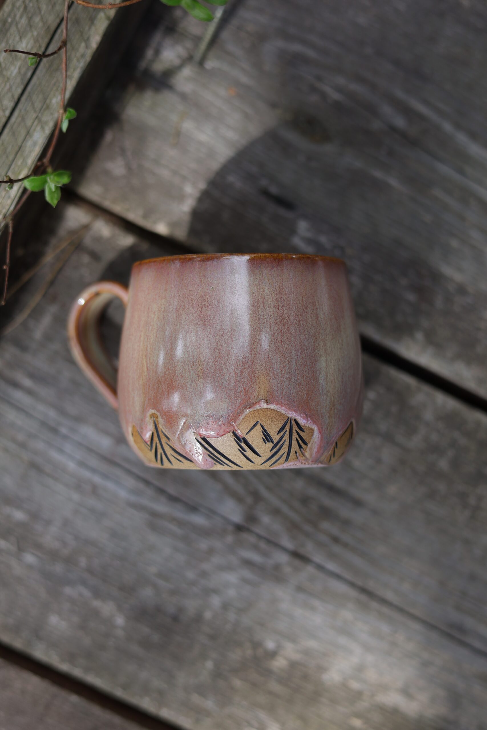 Kubek wykonałam na kole garncarskim z beżowej gliny. Nie jest idealny i posiada ślady moich rąk. Poszkliwiony został szkliwem przeznaczonym do kontaktu z żywnością oraz wypalony w wysokiej temperaturze odpowiedniej do użytej gliny. Nie ma dwóch takich samych kubków, mogą delikatnie różnić się od siebie pojemnością, kształtem, wzorem i efektami na szkliwie. Kolor szkliwa może nieznacznie różnić się od tego na zdjęciach. Ceramikę można myć w zmywarce, ale by dłużej cieszyć się pięknym szkliwem zalecam mycie ręczne.