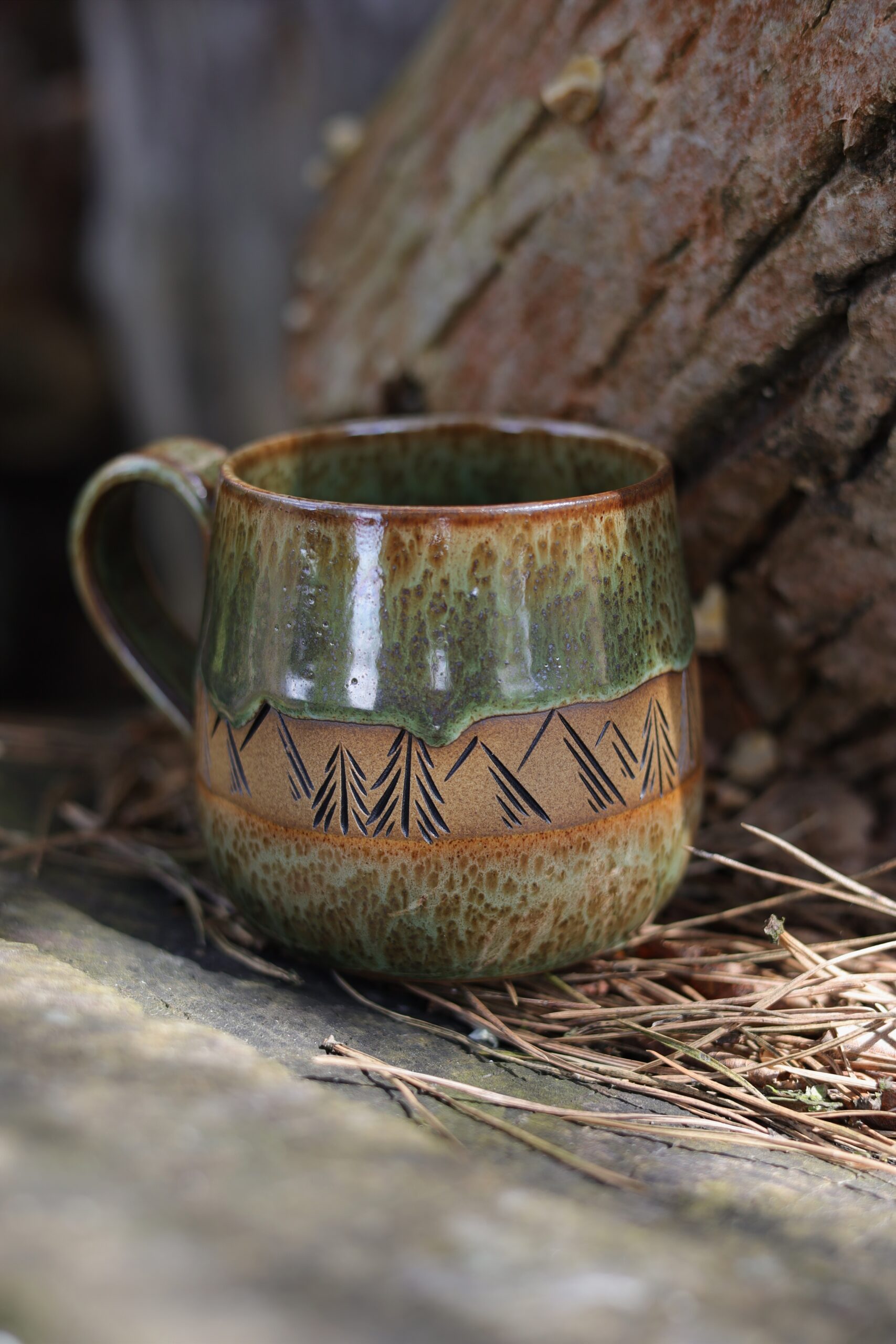 Kubek wykonałam na kole garncarskim z beżowej gliny. Nie jest idealny i posiada ślady moich rąk. Poszkliwiony został szkliwem przeznaczonym do kontaktu z żywnością oraz wypalony w wysokiej temperaturze odpowiedniej do użytej gliny. Nie ma dwóch takich samych kubków, mogą delikatnie różnić się od siebie pojemnością, kształtem, wzorem i efektami na szkliwie. Kolor szkliwa może nieznacznie różnić się od tego na zdjęciach. Ceramikę można myć w zmywarce, ale by dłużej cieszyć się pięknym szkliwem zalecam mycie ręczne.