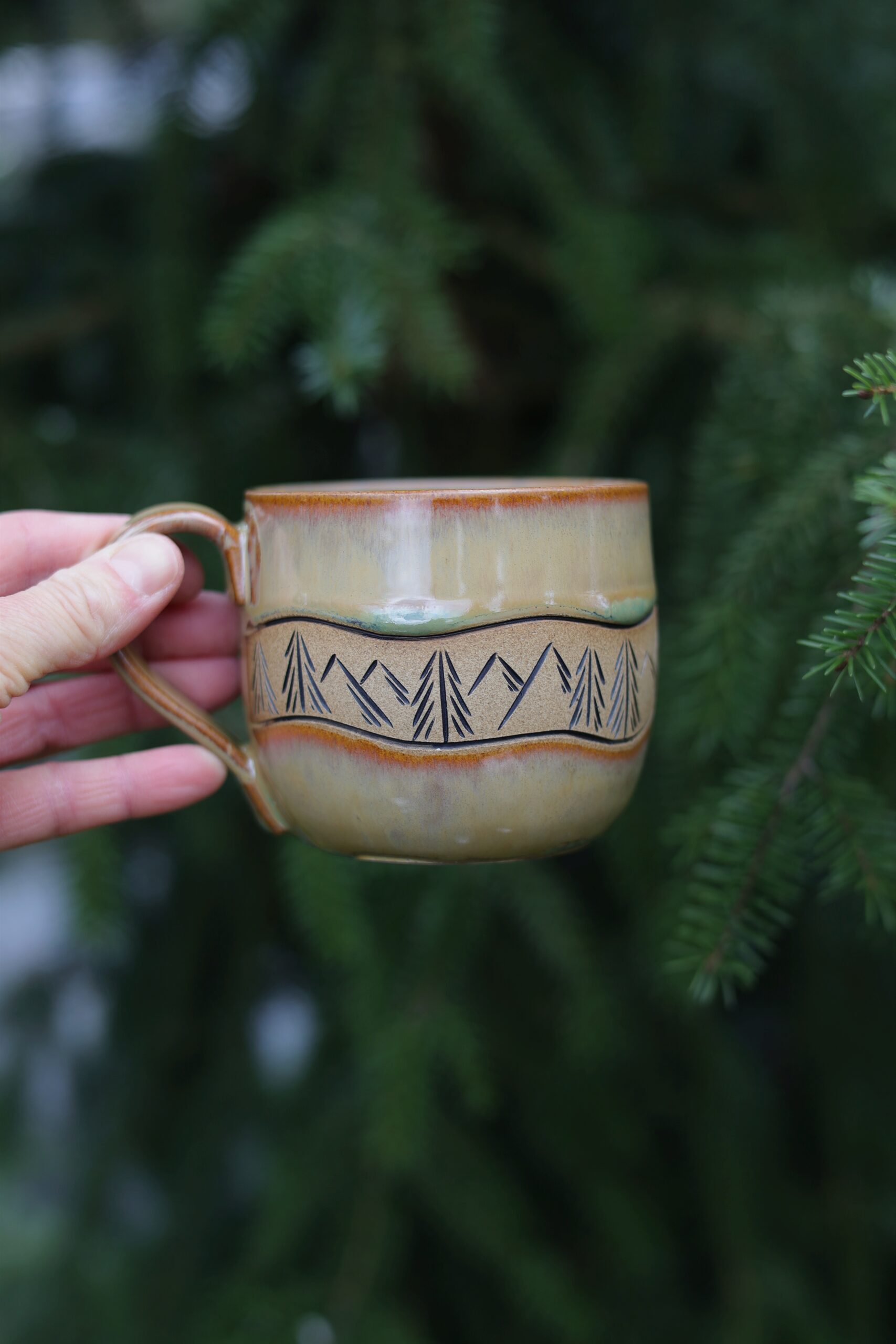 Kubek wykonałam na kole garncarskim z beżowej gliny. Nie jest idealny i posiada ślady moich rąk. Poszkliwiony został szkliwem przeznaczonym do kontaktu z żywnością oraz wypalony w wysokiej temperaturze odpowiedniej do użytej gliny. Nie ma dwóch takich samych kubków, mogą delikatnie różnić się od siebie pojemnością, kształtem, wzorem i efektami na szkliwie. Kolor szkliwa może nieznacznie różnić się od tego na zdjęciach. Ceramikę można myć w zmywarce, ale by dłużej cieszyć się pięknym szkliwem zalecam mycie ręczne.