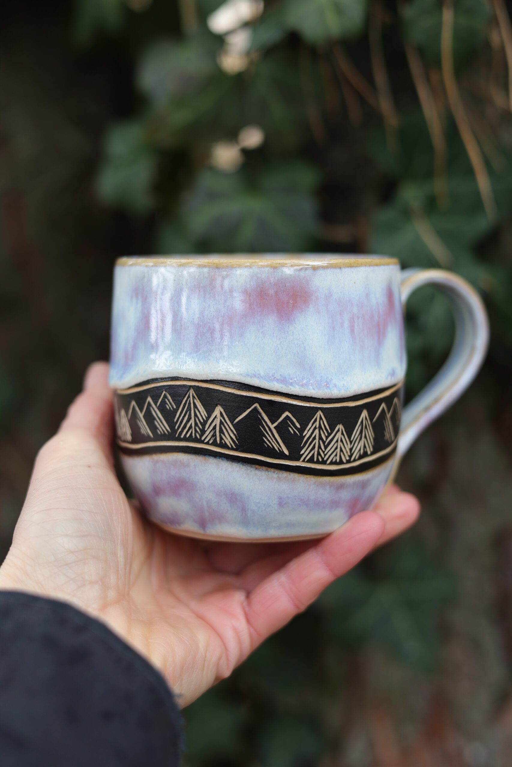Kubek wykonałam na kole garncarskim z jasnej gliny. Nie jest idealny i posiada ślady moich rąk. Poszkliwiony został szkliwem przeznaczonym do kontaktu z żywnością oraz wypalony w wysokiej temperaturze odpowiedniej do użytej gliny. Nie ma dwóch takich samych kubków, mogą delikatnie różnić się od siebie pojemnością, kształtem, wzorem i efektami na szkliwie. Kolor szkliwa może nieznacznie różnić się od tego na zdjęciach. Ceramikę można myć w zmywarce, ale by dłużej cieszyć się pięknym szkliwem zalecam mycie ręczne.