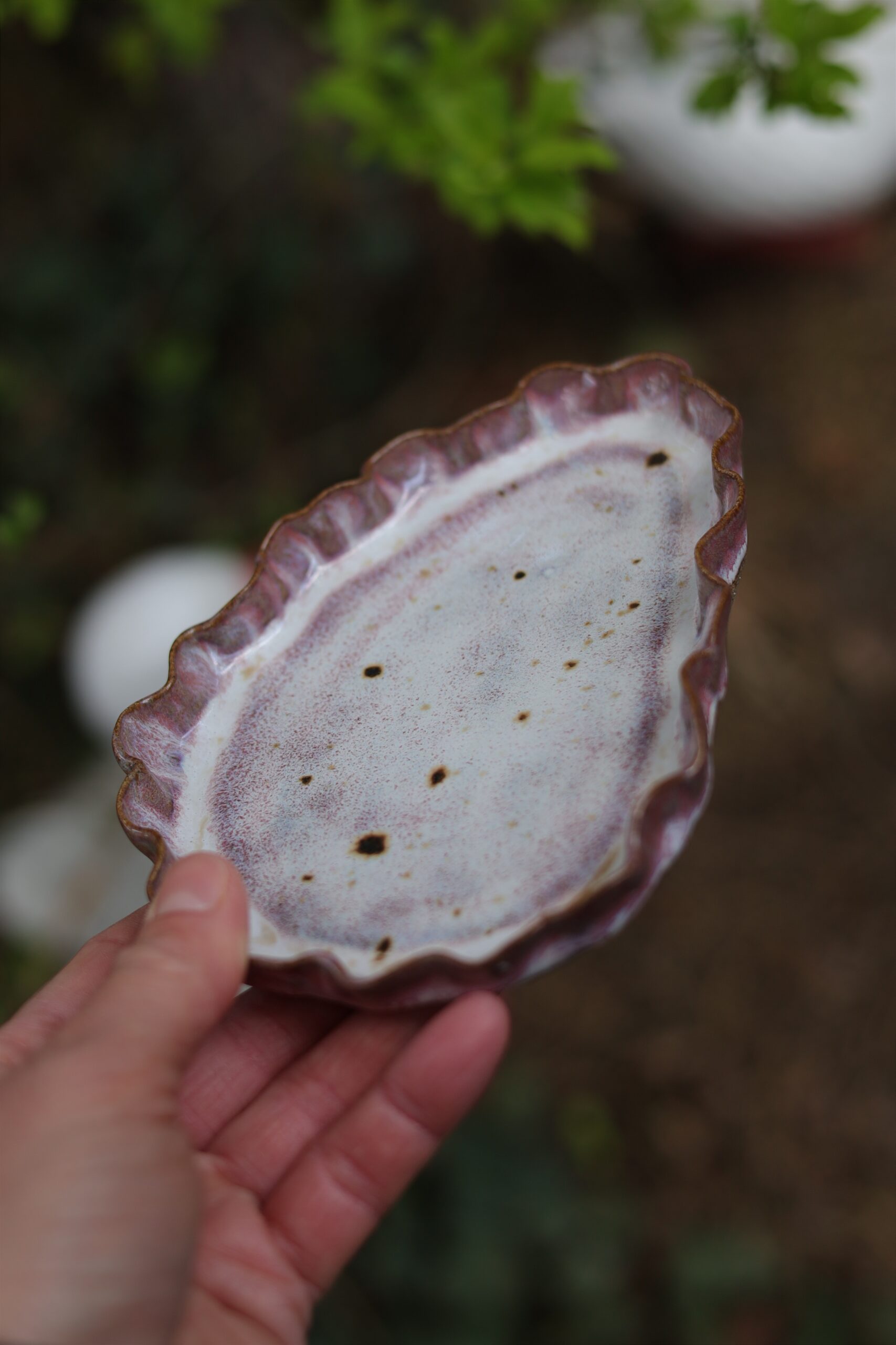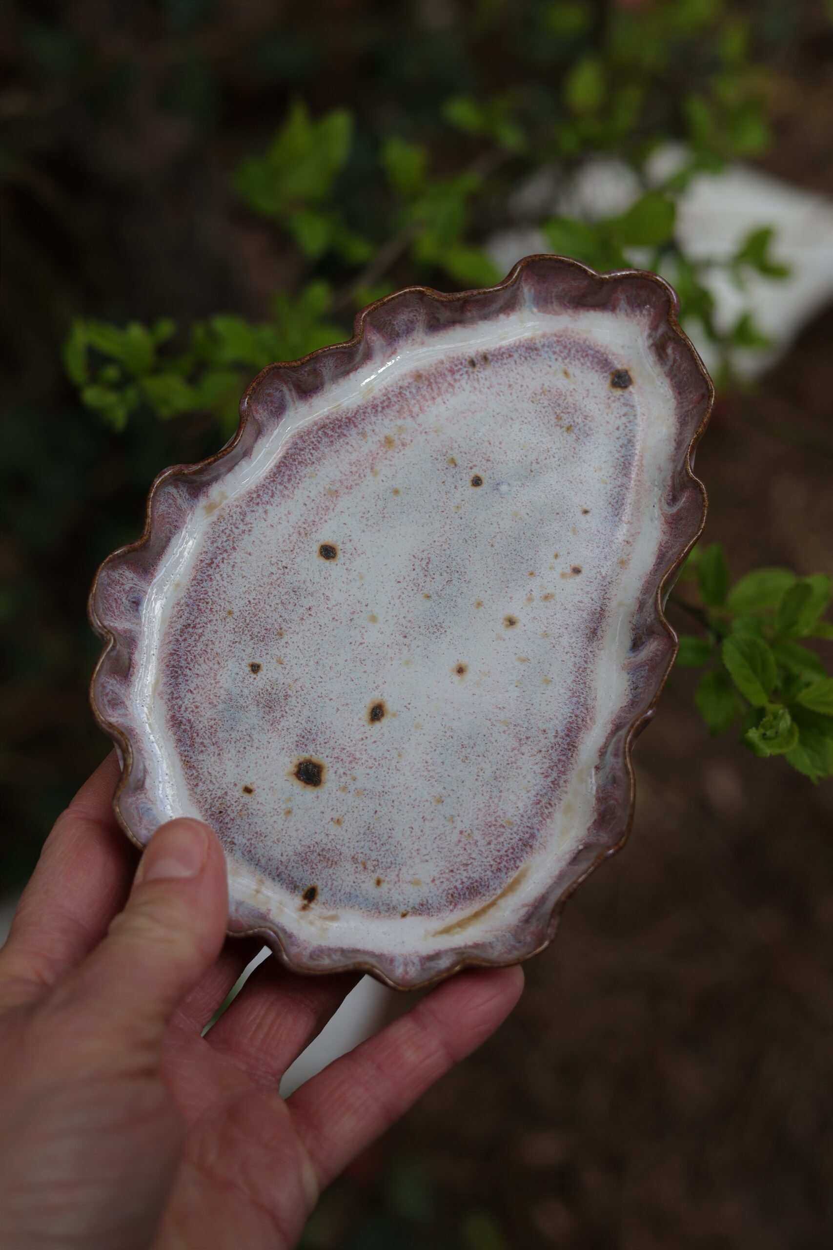 Talerz wykonałam metodą z płata z szarej gliny. Nie jest idealny i posiada ślady moich rąk. Poszkliwiony został szkliwem przeznaczonym do kontaktu z żywnością oraz wypalony w wysokiej temperaturze odpowiedniej do użytej gliny. Nie ma dwóch takich samych talerzy, mogą delikatnie różnić się od siebie pojemnością, kształtem, wzorem i efektami na szkliwie. Kolor szkliwa może nieznacznie różnić się od tego na zdjęciach. Ceramikę można myć w zmywarce, ale by dłużej cieszyć się pięknym szkliwem zalecam mycie ręczne.